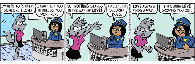 └ Tags: business, cartoon, comic, comic artist, comic book, comic book artist, comic strip, comics, corporate, corporate life, corporation, drawing, fabletech, fairy tales, Francis Bonnet, funny, humor, modern fairy tales, piggies, piggy, pigs, security, security guard, Suburban Fairy Tales, three little pigs, webcomic, wolfette