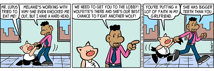 11/19/2025 Nov19 by francisbonnet on November 19, 2025 at 12:01 am Chapter: Suburban Fairy Tales Archive └ Tags: business life, business professional, cartoon, comic, comic artist, comic book, comic book artist, comic strip, comics, corporate, corporate life, corporation, drawing, fairy tales, Francis Bonnet, funny, help, henry, humor, modern fairy tales, piggies, piggy, pigs, Suburban Fairy Tales, three little pigs, webcomic Comment