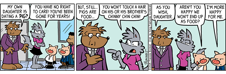 12/3/2025 Dec03 by francisbonnet on December 3, 2025 at 12:01 am Chapter: Suburban Fairy Tales Archive └ Tags: angry, cartoon, ceo, comic, comic artist, comic book, comic book artist, comic strip, comics, corporate life, corporation, dad, deadbeat dad, drawing, fairy tales, father, forrest, Francis Bonnet, funny, humor, lupus, modern fairy tales, mr. lupus, piggies, piggy, pigs, Suburban Fairy Tales, three little pigs, webcomic, wolfette Comment