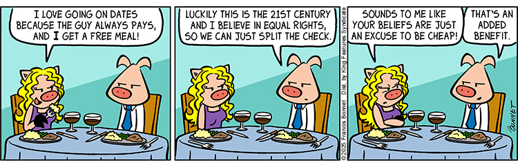 12/17/2025 Dec17 by francisbonnet on December 17, 2025 at 12:01 am Chapter: Suburban Fairy Tales Archive └ Tags: bad date, blind date, cartoon, comic, comic artist, comic book, comic book artist, comic strip, comics, date, dating, dating app, dating fail, dinner date, drawing, fairy tales, first date, Francis Bonnet, funny, humor, modern fairy tales, piggies, piggy, pigs, Suburban Fairy Tales, three little pigs, webcomic Comment