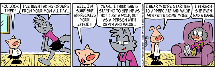 └ Tags: cartoon, comic, comic artist, comic book, comic book artist, comic strip, comics, drawing, exhausted, fairy tales, Francis Bonnet, funny, humor, modern fairy tales, piggies, piggy, pigs, servant, Suburban Fairy Tales, three little pigs, tired, webcomic, wolfette